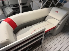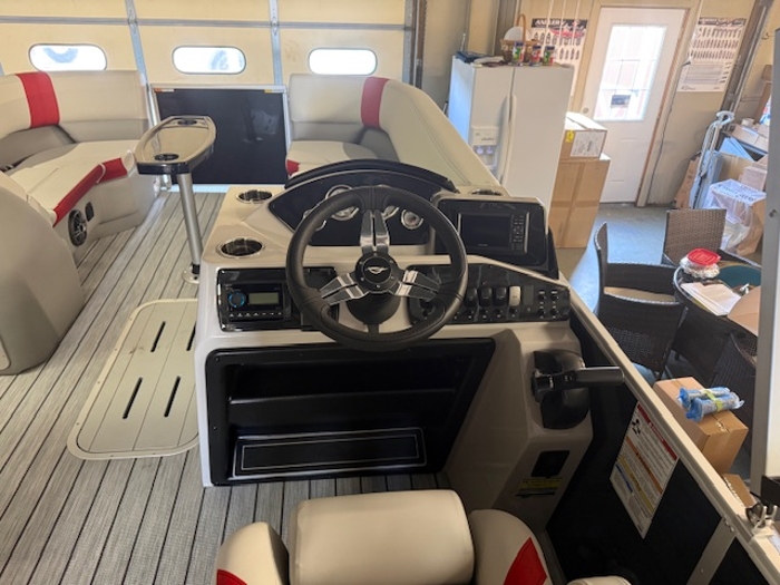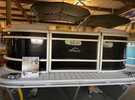 - Options: Hydraulic Steering, Clarion 20 marine stereo w/ 4 speakers, Docking/Nav Lights, Full Forward gate, Aluminum ladder, Mooring Cover, Garmin EchoMap 53cv unit in dash, Trash Can Insert